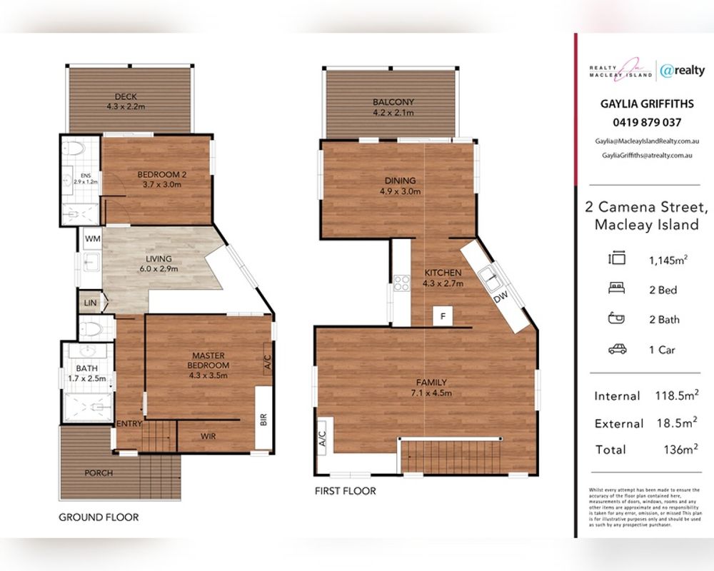 Contact Gaylia Griffiths 0419 879 037 or email Gaylia@MacleayIslandRealty.com.au